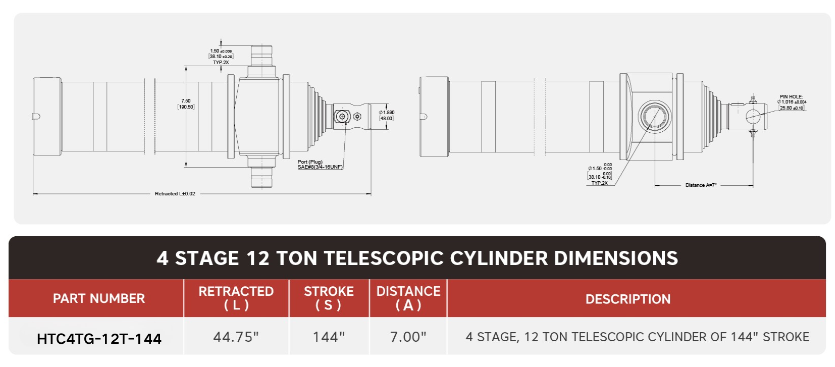 سیلندر تلسکوپی سکته مغزی "HTC4TG-12T-144"، 4 مرحله، 12 تن از 144"