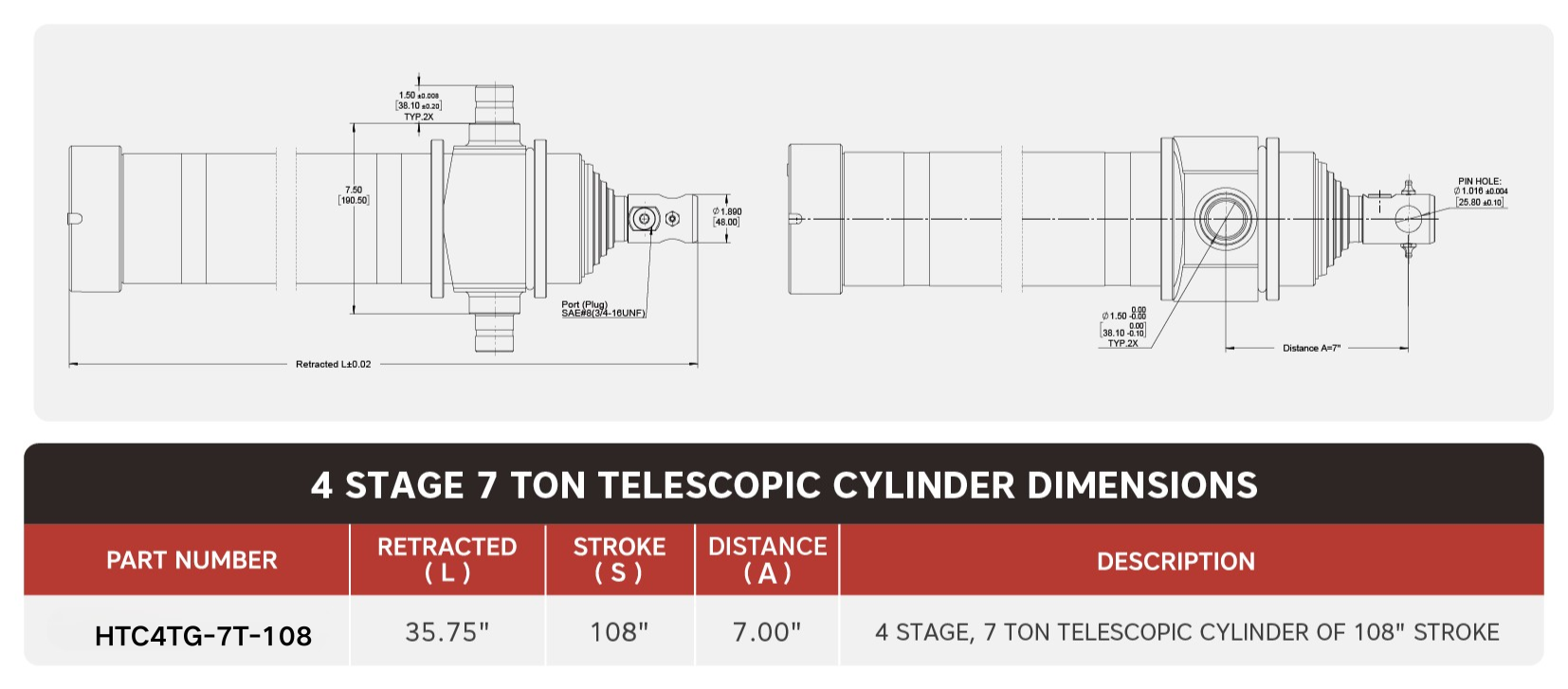 سیلندر تلسکوپی سکته مغزی "HTC4TG-7T-108"، 4 مرحله، 7 تن از 108"