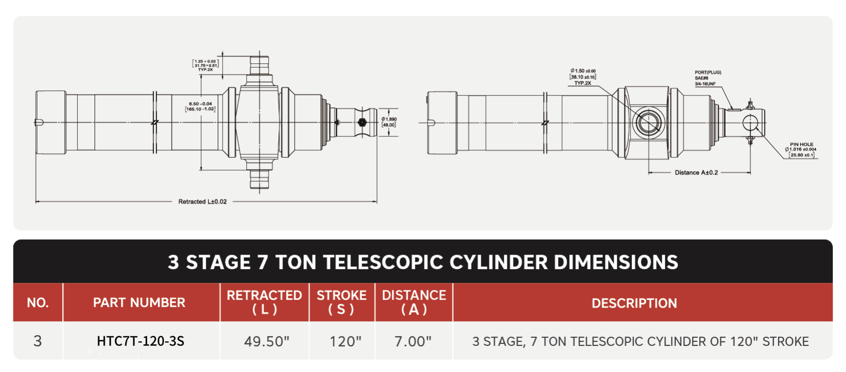 سیلندرهای تلسکوپی سکته مغزی "HTC3TG-7T-120"، 3 مرحله، 7 تن از 120"
